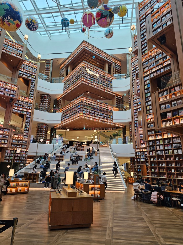 After sharing meals with people who were 10 years younger than me, it was grounding and comforting to share meals with people who were my age. My Korean church friend’s brother and wife took me out on an adventure in Suwon. We waited nearly an hour for bagels at the London Bagel Museum. They were indeed very good. Then we took photos at the instagram-able new Starfield Library.